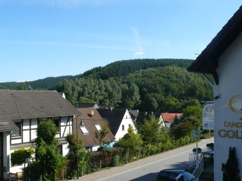 Zo zijn we uitgekomen op Morsbach in het Bergische land te Duitsland... Een kleine 3u rijden en je ziet alleen maar bergen, bossen en kleine dorpjes... Voor met de hondjes een aanrader want aan wandelroutes geen gebrek, het hotel was héél hondvriendelijk, er stonden zelfs water en brokjes op de kamer en aan de voordeur...