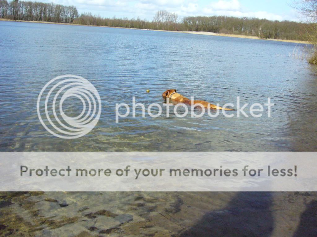 Wat grappig dat hij er zo achteraan dook.Leuk altijd als honden zwemmen.