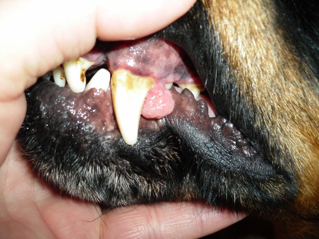 Een tijdje terug een bobbeltje gevonden bij Mortec in zijn mond aan de binnenkant van zijn hoektand. In paniek ermee naar de dierenarts die me gerust stelde met te beoordelen dat het een goedaardig gezwel is dat in de toekomst zal verwijderd moeten worden als deze groeit. Afspraak staat vast, volgende week vrijdag om 9u moet ik Mortec brengen, gaat weer eens hartverscheurend zijn, als hij in slaap gaat vallen, vind dit verschrikkelijk want het lijkt wel of het voor altijd zal zijn. Hoop dat alles goed gaat en dat het echt wel goedaardig is. Arme jongen, hij heeft al zoveel meegemaakt. Hieronder een foto van het gezwel nu.