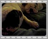 Net 2 oude snurkende mannetjes, of 2 dikke poezen, maar ....... het zijn gewoon 2 gezellig samenslapende honden