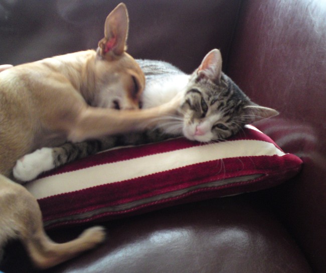 daarnet trok ik zo een leuke foto van mijn Dina en haar beste vriendje Victor, de kat.