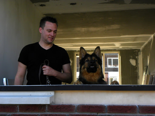 prachtige hond, die onderste vind ik ook mooi samen met de baas naar buiten kijken