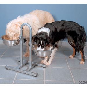 Ik ben opzoek naar een voerbakstandaard waarbij je de bakken op verschillende hoogte in kan stellen. Lucky is namelijk een klein opdondertje en Keetje een slag groter