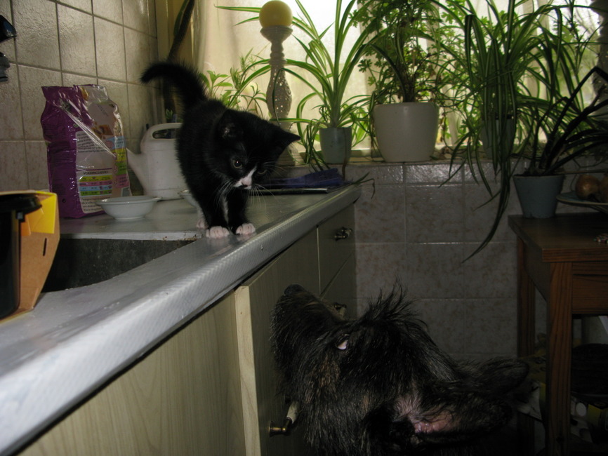 Sinds een paar dagen heb ik weer een poesje in huis. Ze moet nog niet veel van Bobby weten, al is Bobby hartstikke lief naar haar toe.