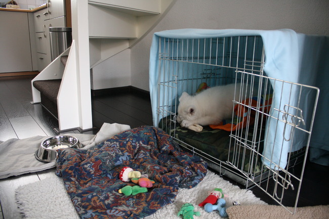 eerste plasje buiten en binnen gedaan haha en hij vind de konijnen errrrug interessant! Frank is nu even weg voor wat boodschappen en nu ik dit tik ligt ie bovenop mn voeten eindelijk wat te slapen, dus ik durf niet op te staan