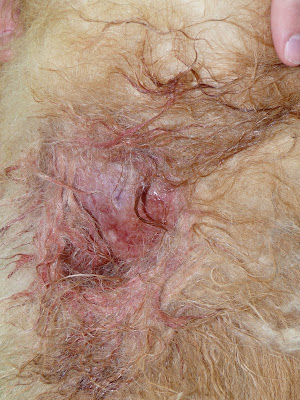 Django krijgt weer rode plekken op zijjn huid en waarschijnlijk gaan dit weer pusplekken worden als die hij al eerder heeft gehad...(ook op dezelfde plekken als eerst)