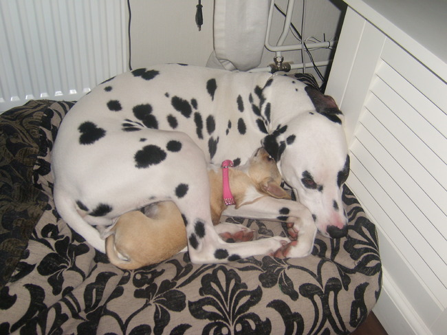 Sky zit vaak plat op zn kont met zn ene achterpoot omhoog, maar kan zo snel even geen foto vinden