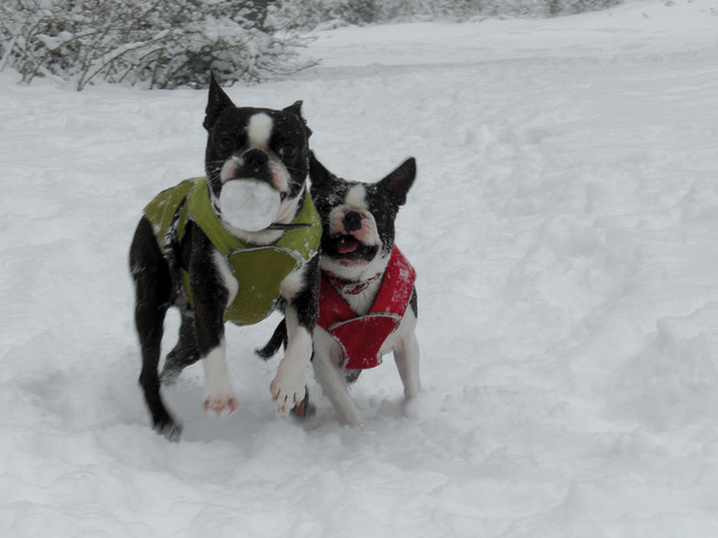 Mijn oppashond was ook de hele tijd zijn bal kwijt in de sneeuw.