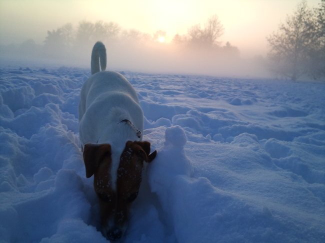 het was schitterend laatst...een mooi pak sneeuw...een ondergaande zon en een laagje mist....schitterende wandeling gehad en nog mooiere foto's
