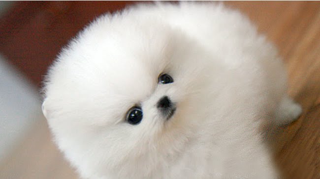 Dit is een volwassen witte Dwergkees, denk dat jouw foto een pup is en dat de witte kleur witter is gemaakt door middel van belichting.