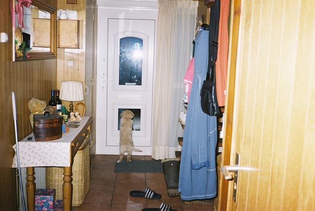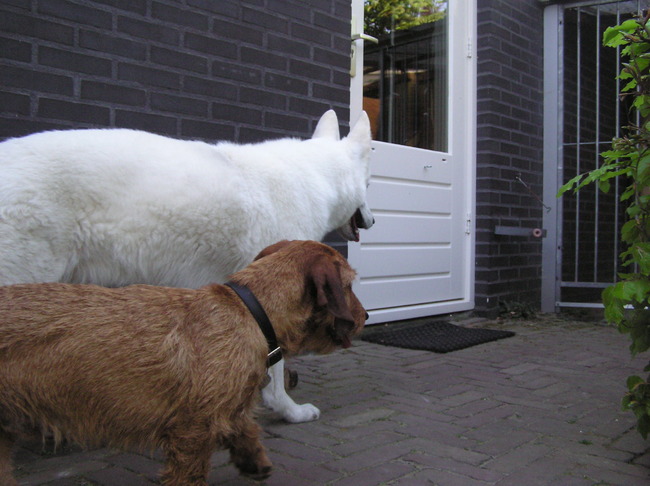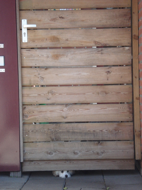 Als je goed kijkt, zie je Lotte onder de poort kijken....