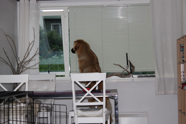En uiteraard als ze bij mijn ouder zijn moet er naar de eendjes, voorbijgangers en al het ander gekeken worden dus gaan ze via de bank zo op de vensterbank zitten.