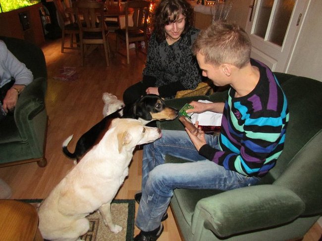 Nala, de pup van mijn tante moest ons huis inspecteren... En daar horen de plantjes ook bij