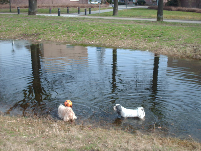 Mojo is ook gek op water, maar heb daar helaas geen foto's van