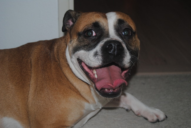 geloof dat tank in love is, kijkt helemaal met zn kop schijn naar dit mooie meisje.