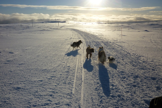 Omdat het vandaag heerlijk weer was hier (lekker zonnetje en 'maar' -7) hebben we heerlijk gewandeld, samen met de 3 honden van mijn schoonzusje en haar oppashondje.