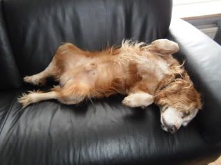 Nou ik lig ook graag zo op mijn rug maar dan het liefste op het bed van de baas midden op! zodat de baasjes aan de kant moeten omdat ik lekker ligt te slapen