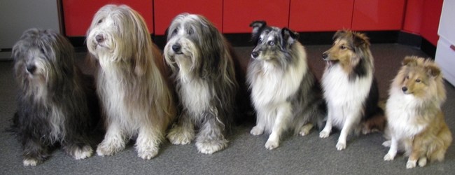 3 Beardie meiden en 3 Sheltie jongens...wat een gezelligheid!