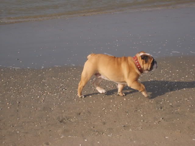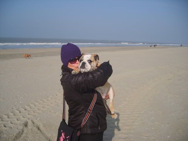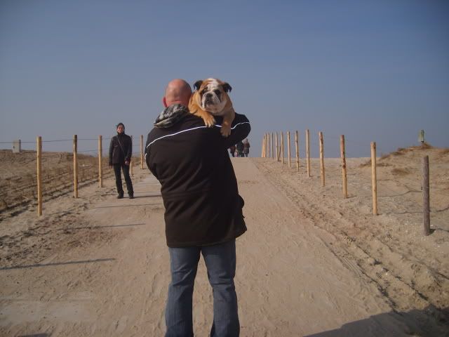 Van de week met hem op het strand gewandeld...eerst door het mulle zand hem naar de waterlijn getild waar het zand hard is(beter voor zijn gewrichten),toen heerlijk gespeeld met alles en iedereen(zonder te hijgen of wat dan ook).....richting huis..