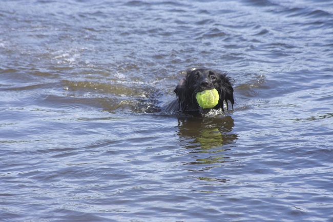 Ze is ook dol op zwemmen. Gisteren dook ze tijdens een wandeling zo het ijskoude wat in