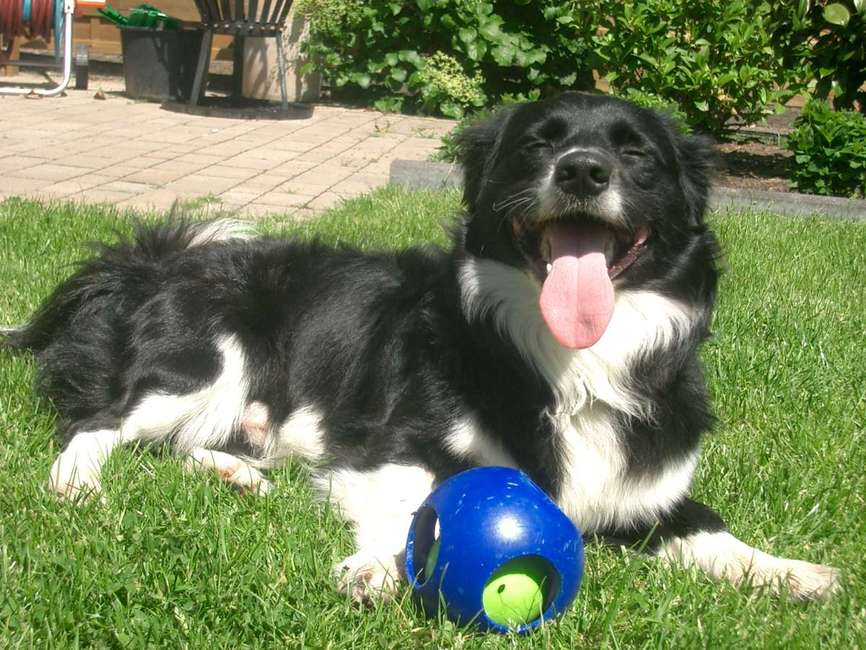 Haha, wat een leuke foto's allemaal. Hier hoorde Bobby opeens iets en sprong op, net toen ik een foto wilde nemen. Zei er soms iemand 'koekje'?
