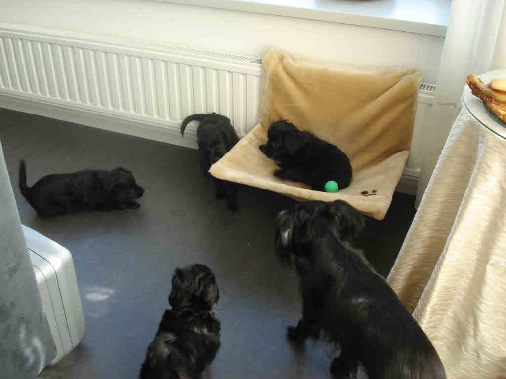 Hebben ze ook niet meer in de puppieren hoor. We hebben de woonkamer en het balkon puppieveilig gemaakt zodat ze de hele ruimtes kunnen benutten. En ze gaan allemaal vanzelf in de bench als ze moe zijn. Ideaal! Ook proberen we ze al een beetje het ritme mee te geven. De pups in de woonkamer als wij slapen en verder geen aandacht aan besteden. En Chick bij ons op bed. En tis raar maar waar. Maar ze staan steevast om 7 uur s'ochtends te krijsen om aandacht.. Verder de hele nacht niet!! Ongelooflijk he