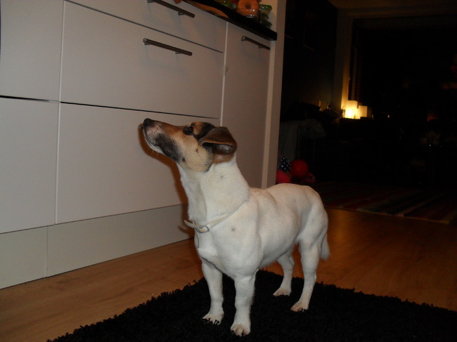Gisteren heb ik een paar recepten uitgeprobeerd uit m'n nieuwe hondenkookboek. 't Was sowieso hartstikke leuk om te doen en het was dubbel zo leuk dat Melo er zo van heeft gesmuld.