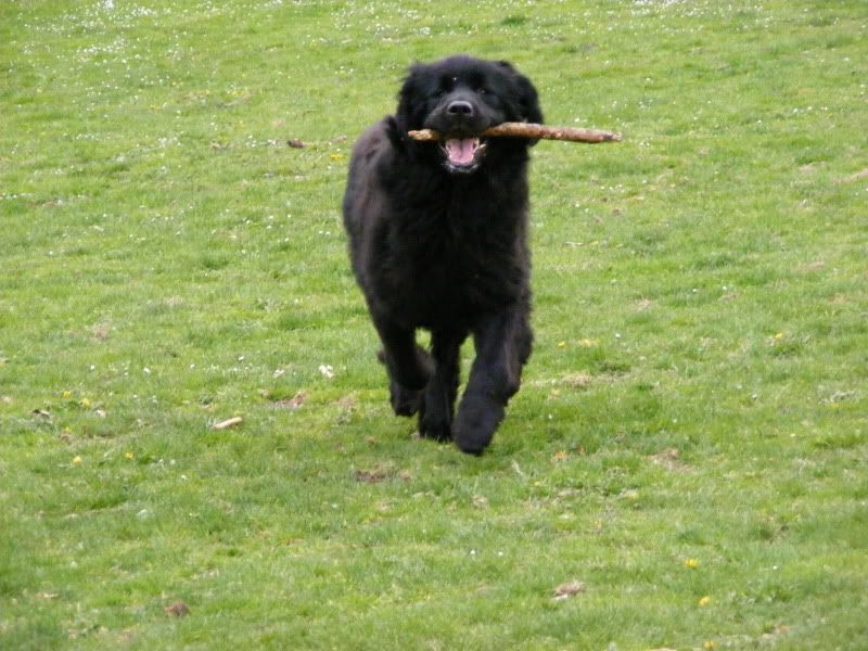 Ik ben wat gaan uitproberen met Yuna op 't veldje. Ik wilde weten hoe ze op mij zou reageren zonder dat daar een commando bij aan te pas kwam (en daarna is ze beloond met haar favoriete bezigheid: 'stok-apporteren'). Ik vond dat ze 't heel netjes deed, hier het resultaat: