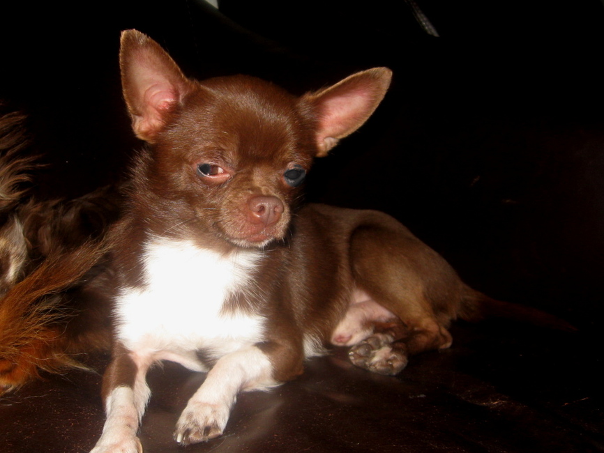 wat is hij schattig!!!!! maar het lijkt mij eigenlijk ook geen 100% chihuahua.. maar ach. dat maakt ook niets uit, als hij maar lief en schattig is!!