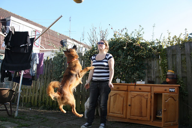 Wij waren vandaag de hele dag in de tuin aan het werk en de hondjes bedachten dat dat een mooie kans was om even buiten te spelen!
