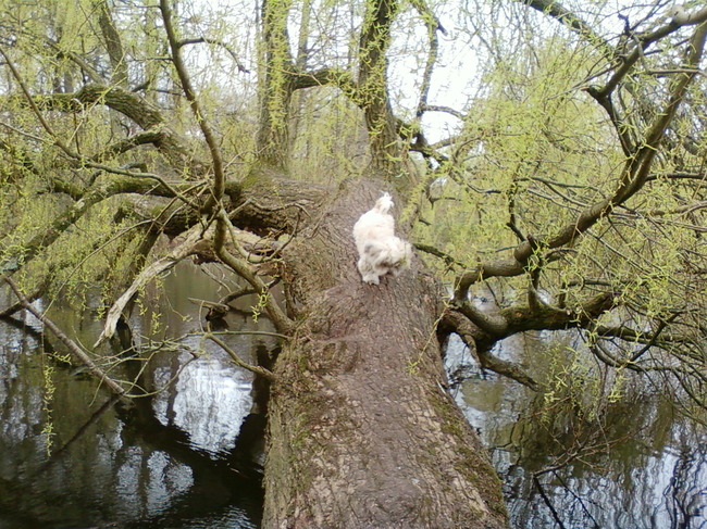 Als Missy zo'n boom ziet, dan rent ze er op af en klimt er in!
