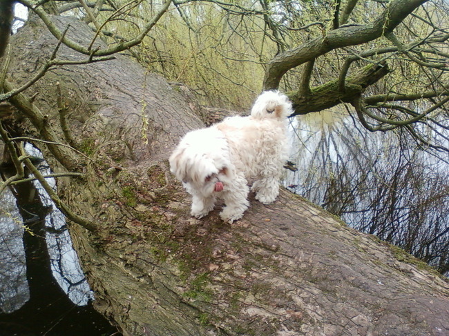 Hahahaha.. heel herkebaaar.. mijn hondje vind omgevallen boomstammen die over het water heen liggen, ook geweldig leuk