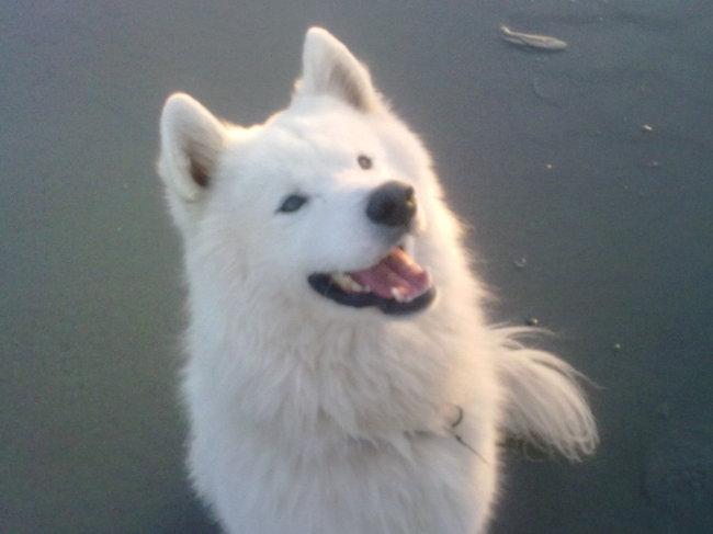 .. het is een samojeed en ik wou altijd al een samojeed. ik had er ooit eentje in onze stad zien lopen en ik was metteen verlieft op het bijzondere uiterlijk en zijn lieve maar stronteigewijze karakter.