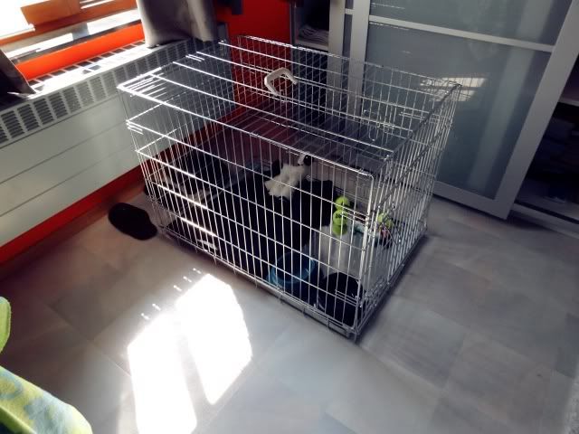 Kasper is nu een dag thuis maar hij houdt helemaal niet van zijn bench, vannacht van mijn hart een steen maken waarschijnlijk en hem laten janken