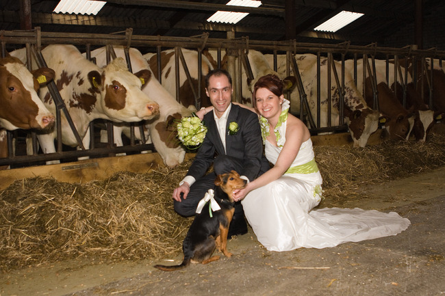 Gefeliciteerd met jullie huwelijk, hele mooie foto met de koeien erbij, jullie zien er ook heel mooi uit.