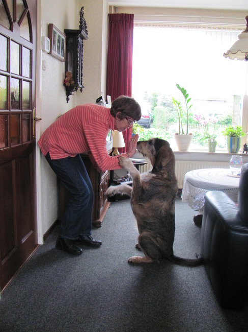 Gewerldig!! Zo zie je maar weer, een hond is nooit te oud om te leren!! Hoeveel koeken heeft dat gekost!!