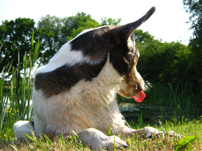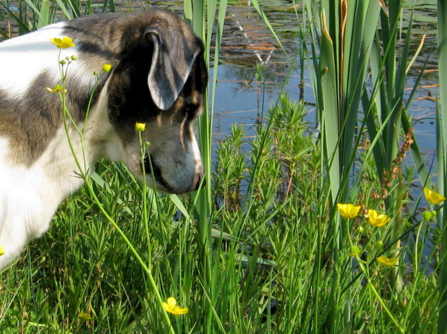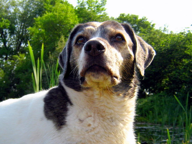 Ze was een oude zieke hond die zichzelf een jaar of twee geleden opgegeven had en apatisch werd, maar door liefde en toewijding veranderde in een stralende zelfbewuste hond en nu nog steeds geniet van haar oude dag.