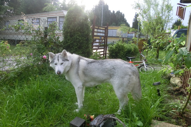 Luna is schofthoogte 60 cm....dus ja groot uit gevallen huskydame....ze weegt nu eindelijk....eindelijk...26 kilo...."pefect" zei de dierenarts enkele weken terug met controle en inentingen van beide dieren, Mickey de kat was ook enstig ziek toen we hem ophaalde......eindelijk is Luna weer op normale goede gewicht en helemaal gezond en Mickey ook!