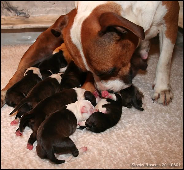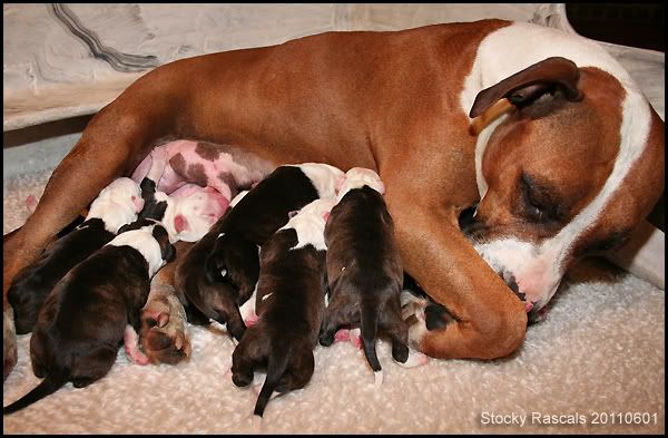 Gefeliciteerd met je 10 puppies in totaal, erg jammer dat er 2 dood zijn maar je kunt er niks aan doen, ik geloof goed dat jij een zware nacht hebt gehad.