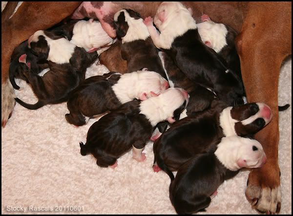 gefeliciteerd met je "kinderen". Inderdaad jammer van de twee doodgeboren pups maar zoals je zelf al schrijft is 10 echt al een flink nest.