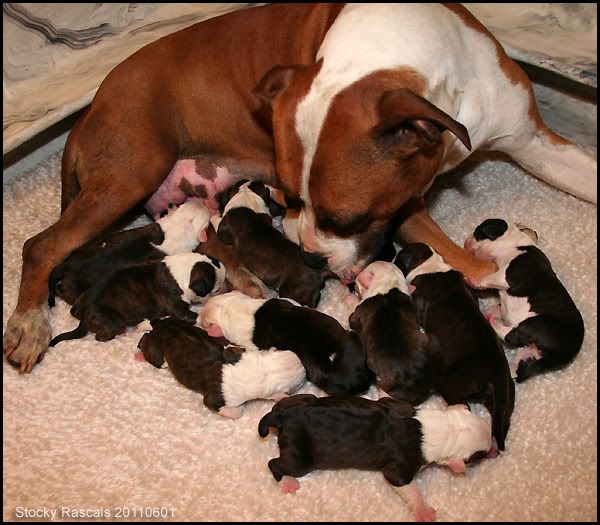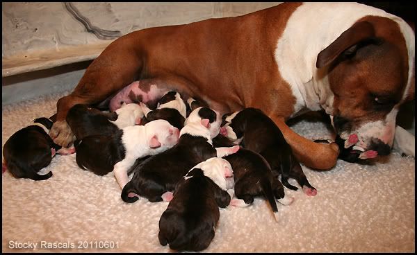 Uiteindelijk waren het er dus zelfs 12. Jammer van de laatste 2, maar ze heeft nog 10 mooie pups om groot te brengen en zoals ik op de foto's zie is ze een goed moedertje.