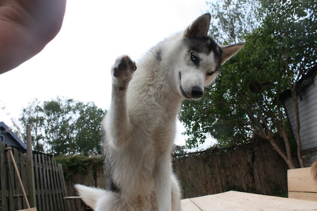 (Voor de husky club, ik weet dat Jackie geen husky is, maar ze is wel een goede leaddog want ze luistert het best naar de commando's van de twee ontdekte we vanmiddag dus misschien is het TOCH een husky!)