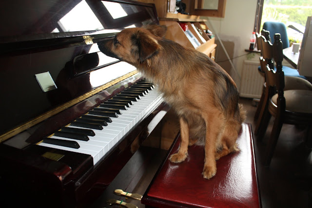 Haha Nukka want die ging op een gegeven moment zo hard kwispelen dat ze de zelfde noot 5 keer aan sloeg