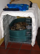 en die van poppy staat in de keuken en ook zij kan er in en uit.in de nacht slaapt ze lekkerin haar bench.er is niets zieligs aan hoor.wat ik zielig vind is dat sommige mensen de hond voor 6 a 7 uur opsluiten in een bench.dat is zielig.bij mij lopen ze gewoon de hele dag en avond vrij in de ronde.
