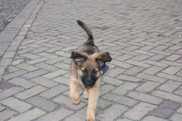 Inderdaad Herder achtig. Ik had ook het idee dat deze pup wel groter gaat worden dan Jackie of Shiva hoor... Ontzettende poten!