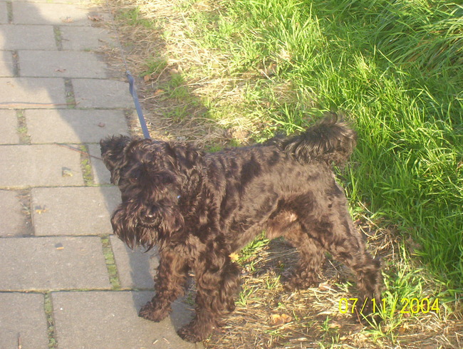 Hij heet Jack en is een zwarte dwerg snauzer van 10 jaar. Een heel vrolijk beestje ondanks hij wel eens flink gebeten is, bleef hij vrolijk, tuurlijk met soms dat eigenwijze van een snauzer