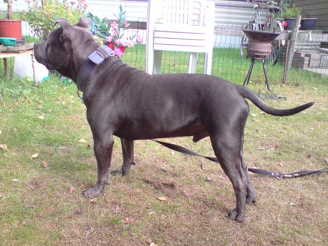 De honden hebben een mooi krachtig lijf en dan hangt men er een enorme brede band omheen..