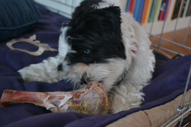 Hier nog een paar foto's van mij, mijn halsband en het overheerlijke bot!