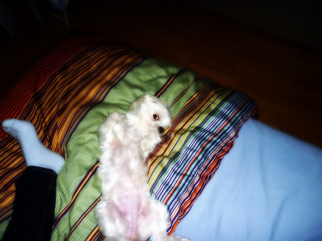 Hier ligt ze in de zon,en dat is maar een klein stukje ,dus moet ze met een kromme nek zichzelf in het hoekje proppen: