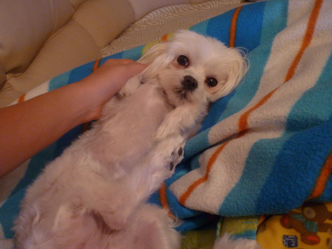 bij de hond van mijn ouders zie je ook vaak niet wat voor of achter is als die op de rug ligt, super schattig